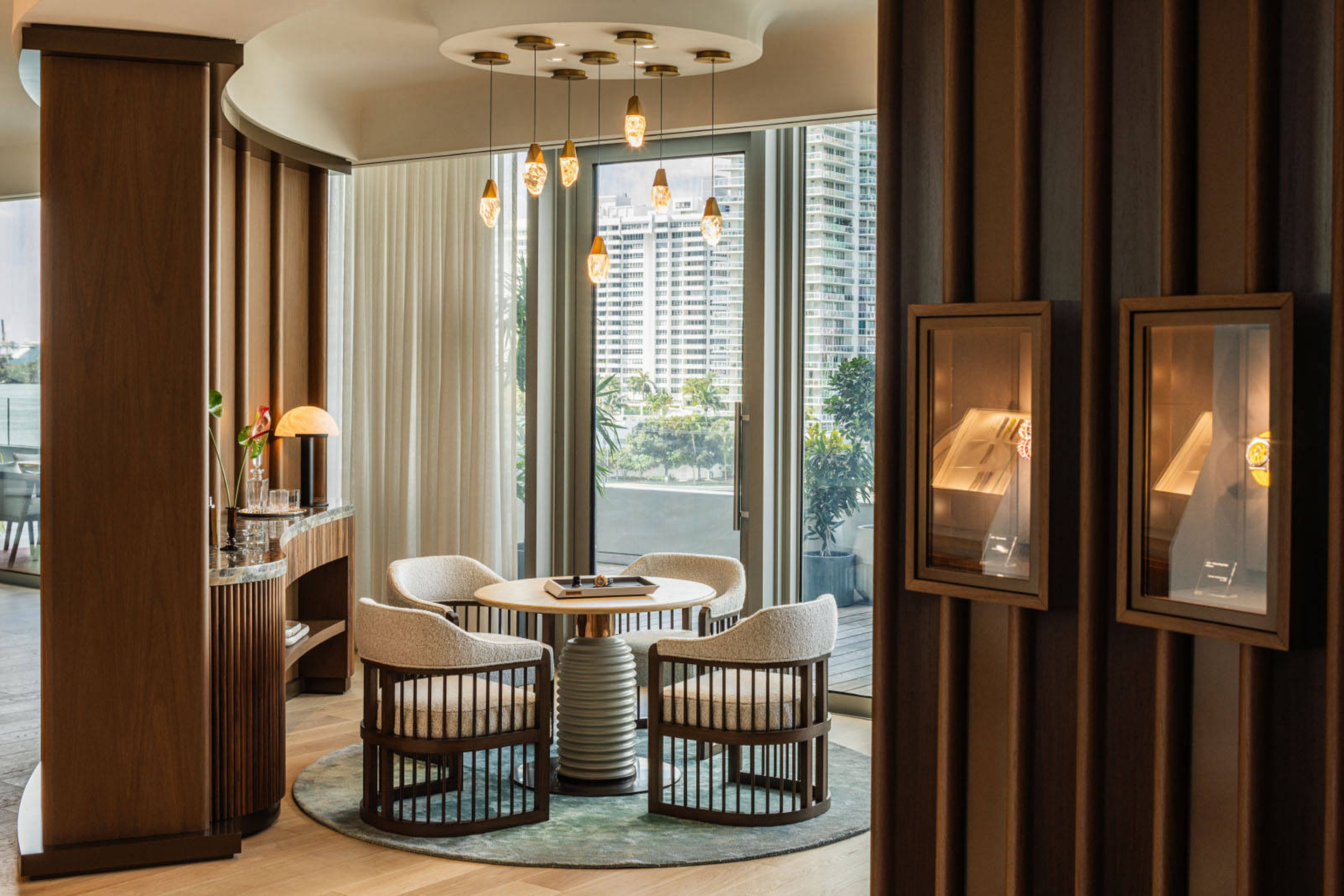 The interior transitions fluidly between enclosed rooms and social areas, culminating in a lounge designed for informal hospitality. A dedicated listening corner, complete with a record player and vinyl selection, reinforces the residential atmosphere, while art is seamlessly embedded into the environment rather than presented as a standalone feature. Works from Geneva’s Wilde Gallery appear alongside sculptures by Brazilian artist Sallisa Rosa and rotating contemporary commissions. Extending outward, a terrace opens to Miami’s climate, framing views of the water and skyline. This new opening marks Audemars Piguet’s second Miami location following its longstanding Bal Harbour boutique established in 2006, and further expands a global AP House network spanning cities from New York to Zurich and Tokyo. As Louis-Gabriel Fichet notes, the space is designed to welcome clients, partners, and friends into a setting defined by connection rather than transaction.