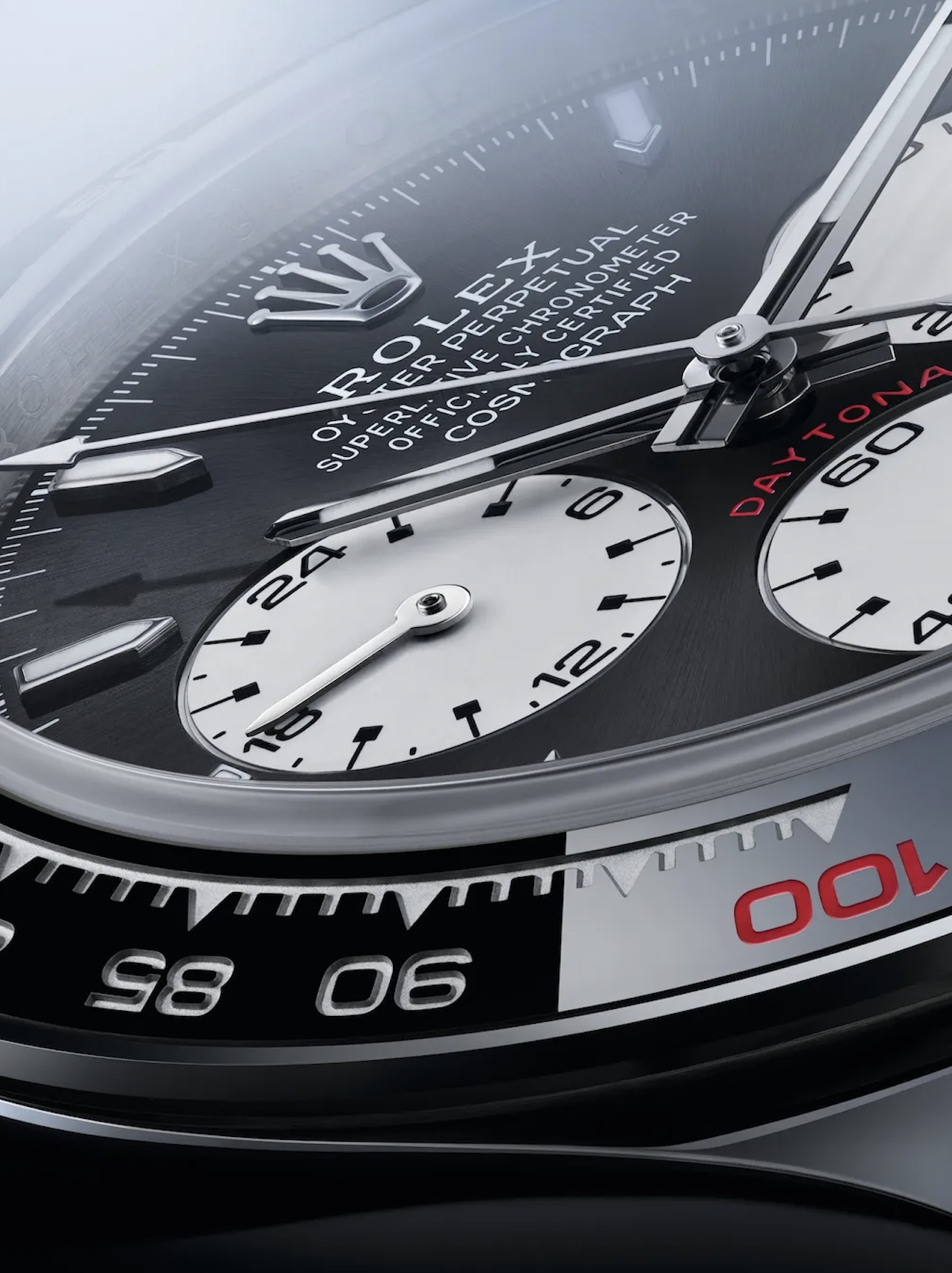 This exclusive model is powered by the 4132 caliber, entirely designed and developed by Rolex, and derived from the 4131 caliber. This self-winding mechanical movement delivers exceptional performance in terms of precision and power reserve, offering a chronograph function that counts up to 24 hours instead of the usual 12, and a power reserve of approximately 72 hours. The caliber features unique finishes, including Rolex's Geneva waves-decorated bridges, reinterpreting a famous watchmaking decoration. As always, Rolex stands for excellence, and this new version, like its predecessors, comes with the Superlative Chronometer certification, guaranteeing perfect performance on the wrist. This unparalleled timepiece perfectly combines sporty elegance with cutting-edge technical capabilities.