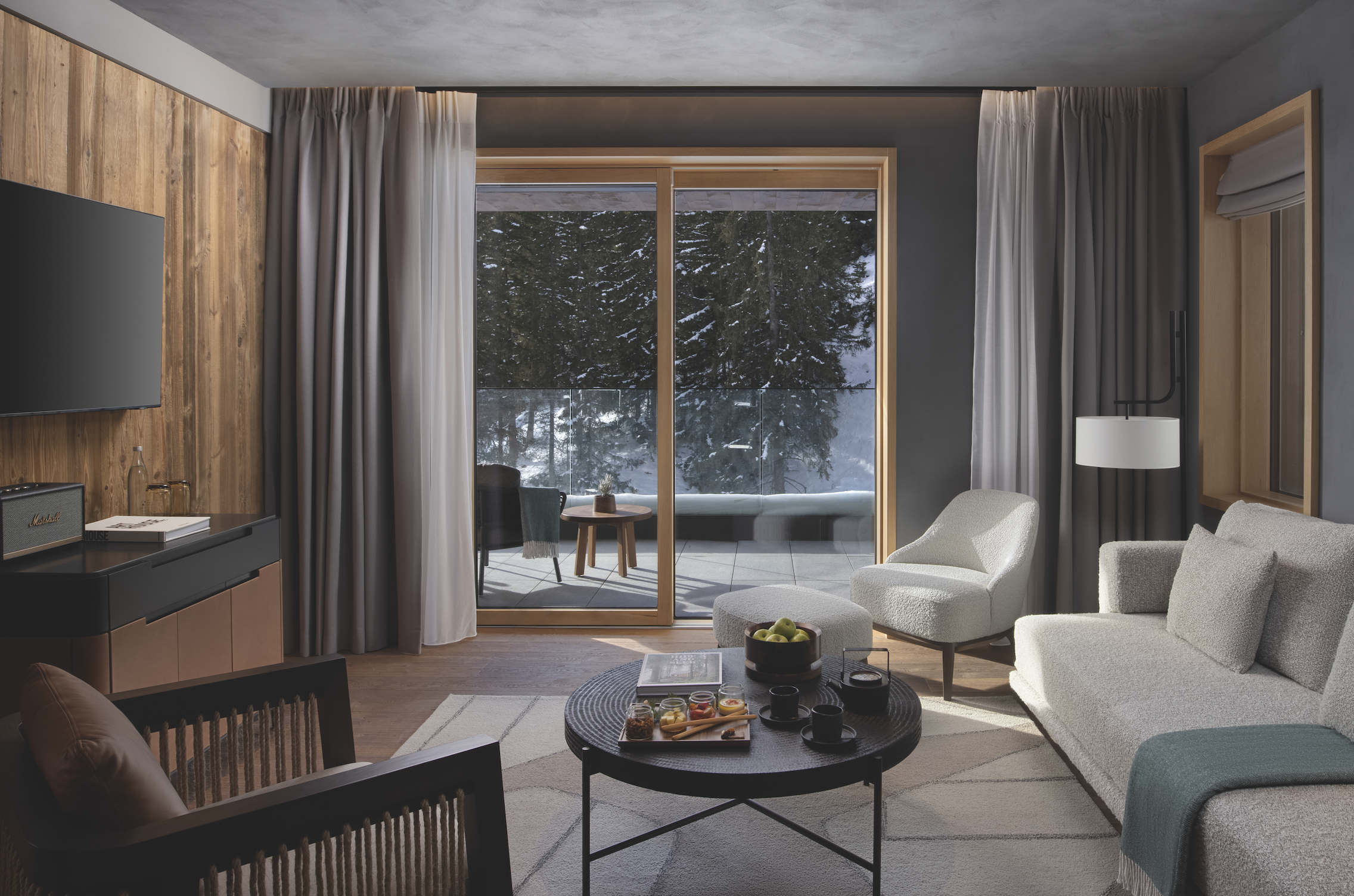 Boasting 78 elegantly designed guestrooms and suites, including a lavish three-bedroom prestige apartment, each space exudes the authentic charm of a Swiss chalet, redesigned in a modern and airy style. High ceilings and large bay windows maximize the connection to the natural surroundings, providing breathtaking views of the Alpine landscape. Sustainable materials such as quartzite stone, local larch and oak, and slate roofs reflect Six Senses' commitment to eco-friendly luxury.